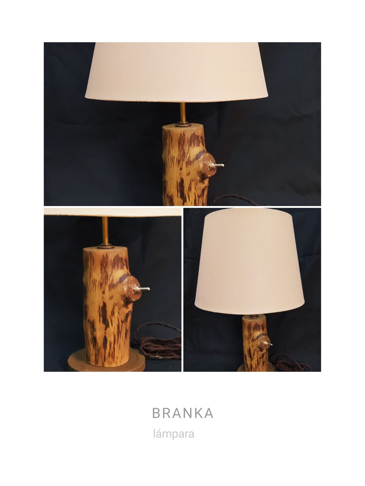 Branka esta elaborada con una pequeña pero robusta rama de roble y dotada de un interruptor incorporado como continuaciónn de una rama, base de metal.
